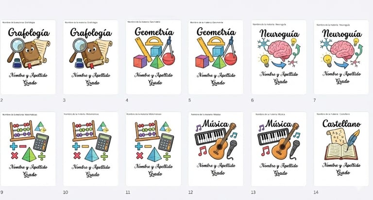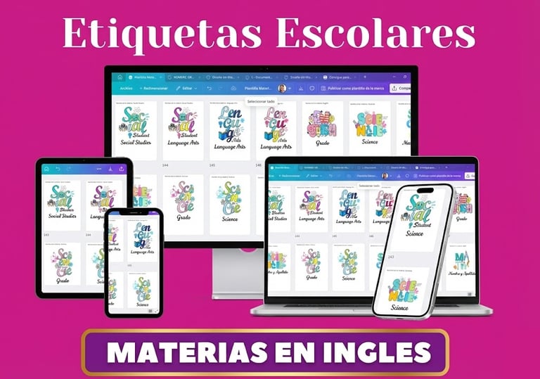 SON MAS DE 50 MATERIAS TANTO EN ESPAÑOL COMO EN INGLES, sin preocupaciones por confusiones o pérdidas. Diseños listos para imprimir y personalizar sin complicaciones.